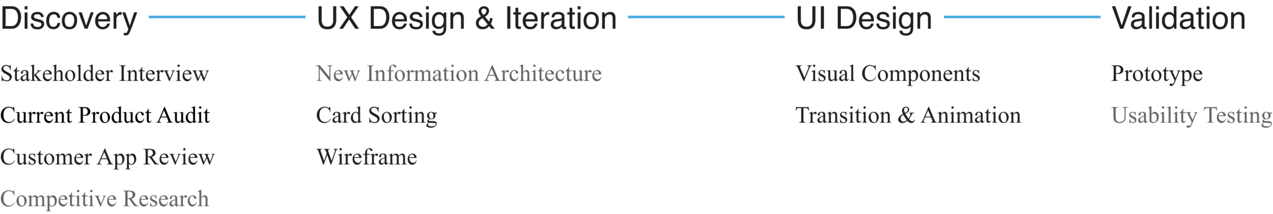 To validate the initial problem and requirement, our team started from three directions - to audit the current Digital Ordering App, to talk with stakeholders, and to review the competitive products in the market.